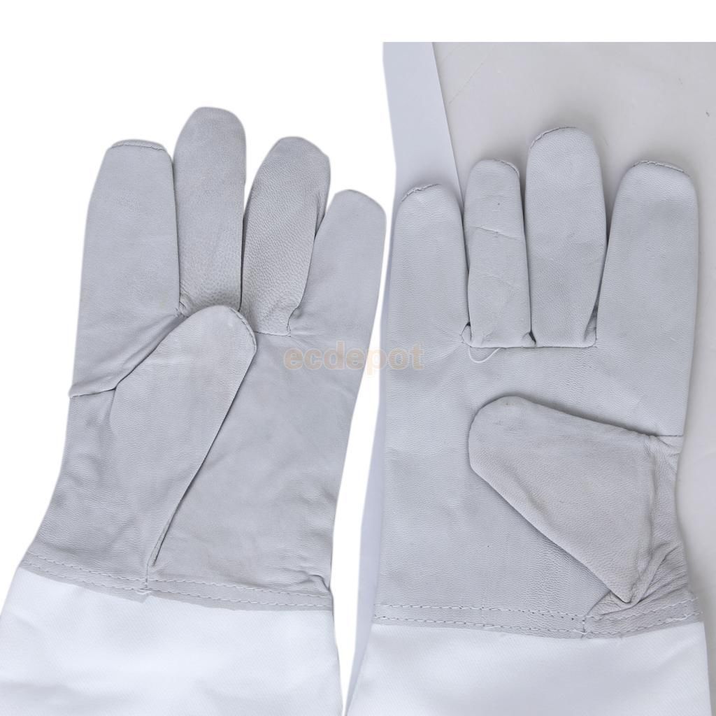 Leather Goatskin Bee Gloves are made of goatskin leather with a nylon gauntlet that extends up above the elbow with elastic at the end to form a bee tight seal.