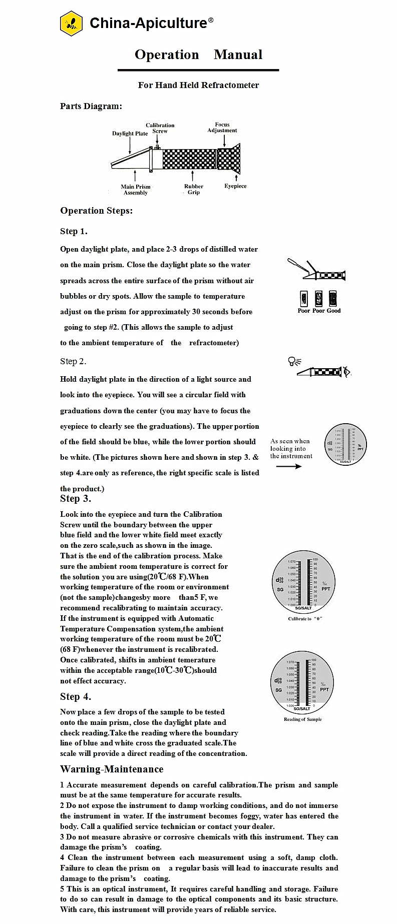 Function: Hand held Refractometer is used to test brix standard, salinity, and clinical protein.