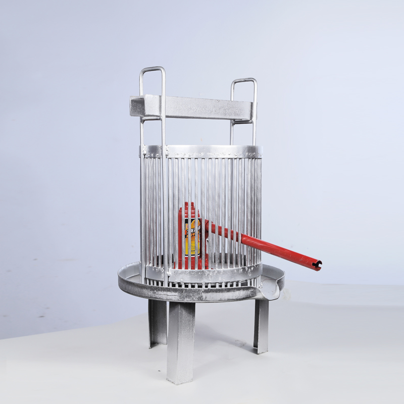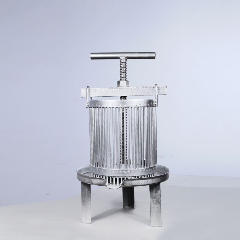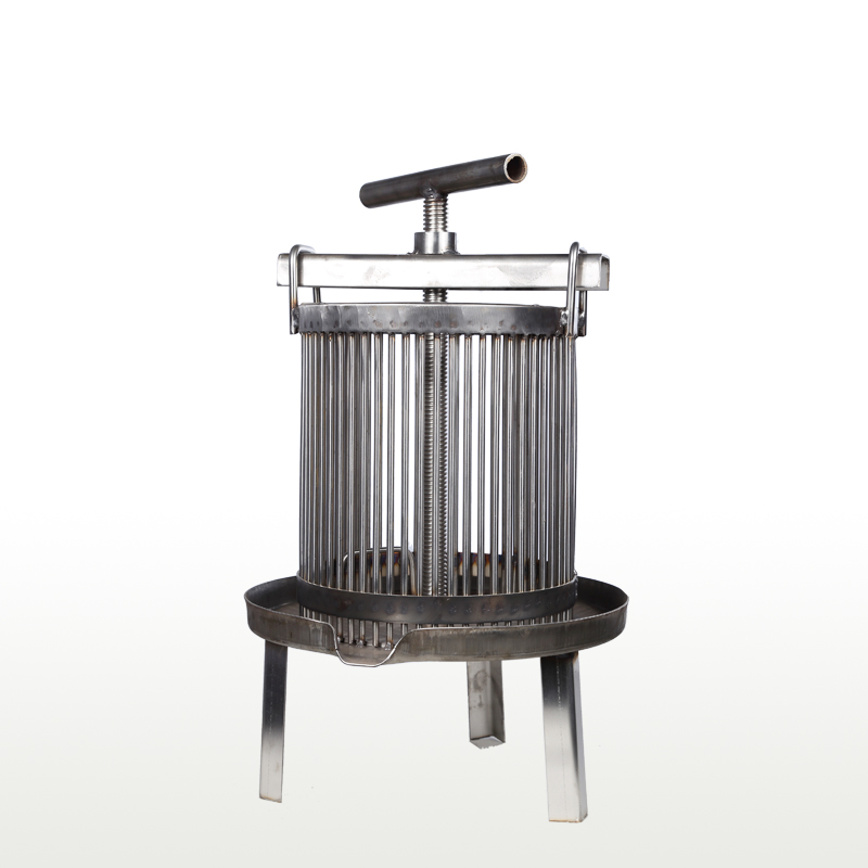 It’s a vice operating from top to bottom and it squeezes the beeswax and honeycomb until most of the honey is pushed out into the catchment basin at the bottom and flow out into your container.